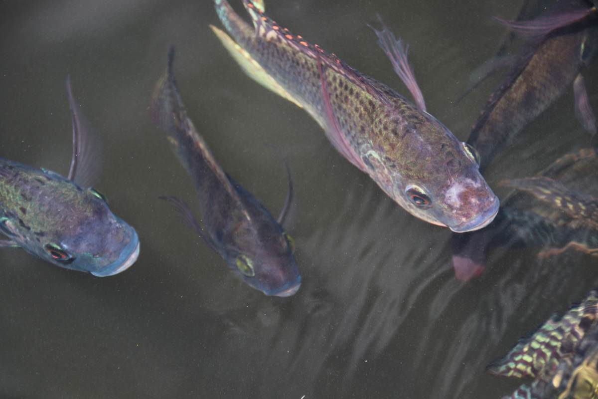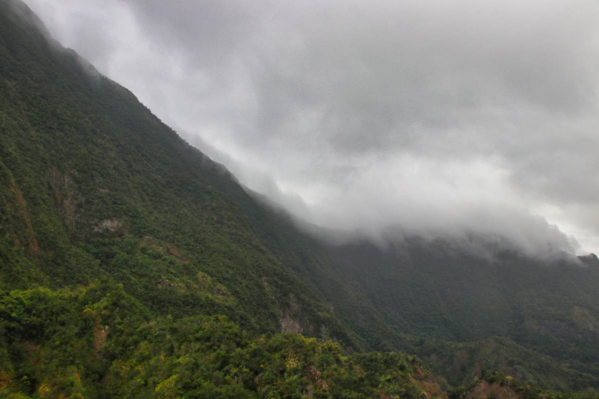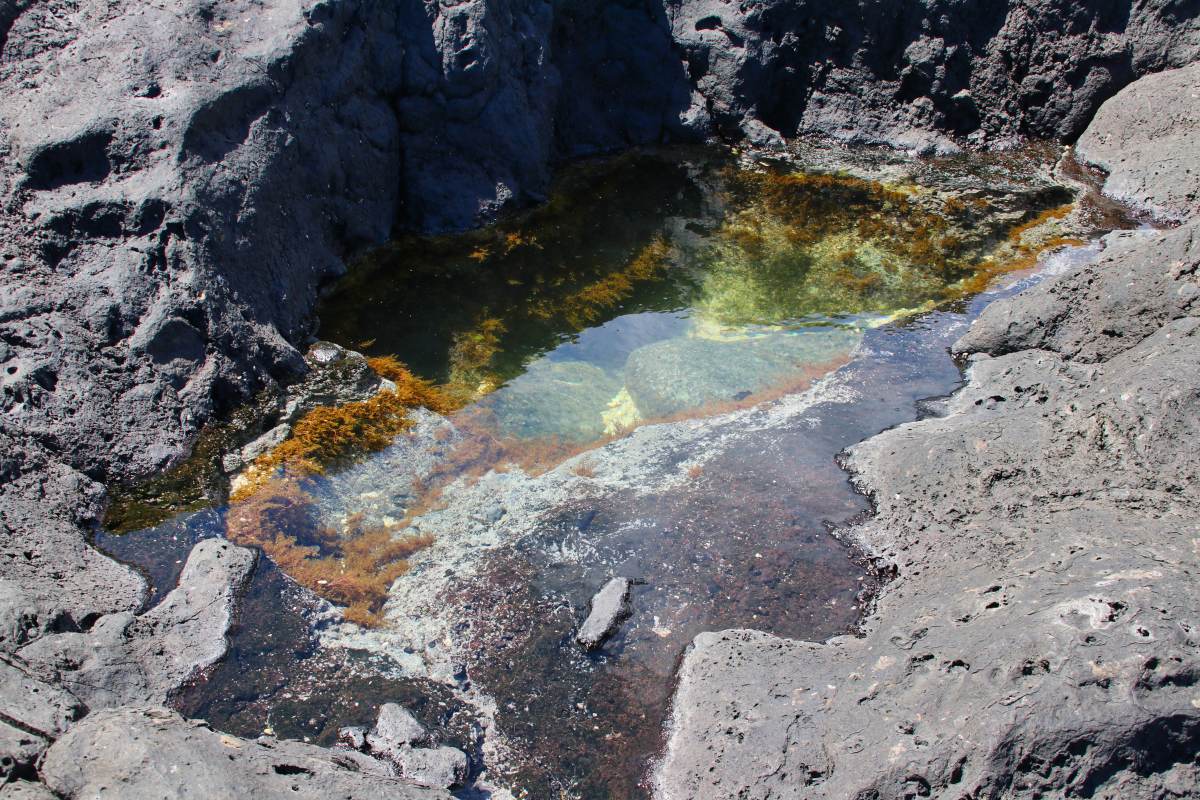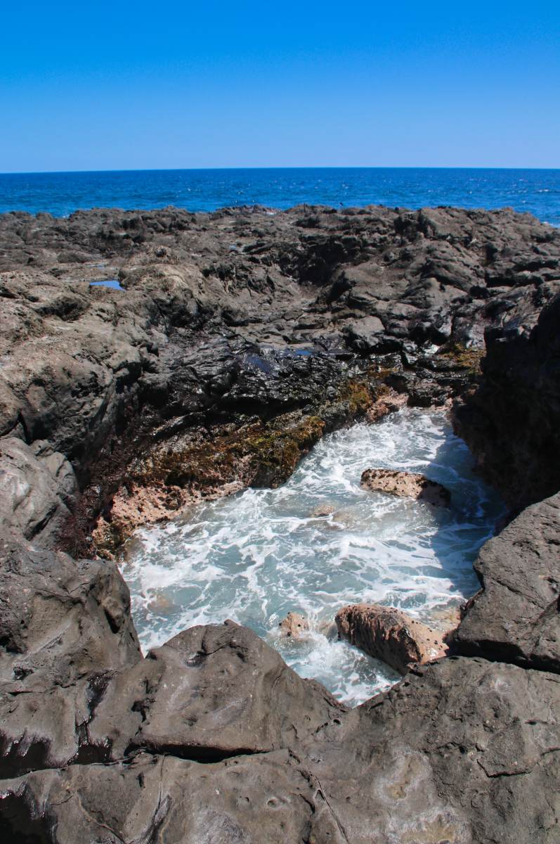 Auf dem Weg nach Cilaos machen wir noch einmal Halt am Meer. Neben den Salinen knallen die Wellen gegen die Felsen, und das Meerwasser spritzt durch verschiedene Löcher. Wir beobachten Fische, die direkt am Ufer nach Nahrung suchen.