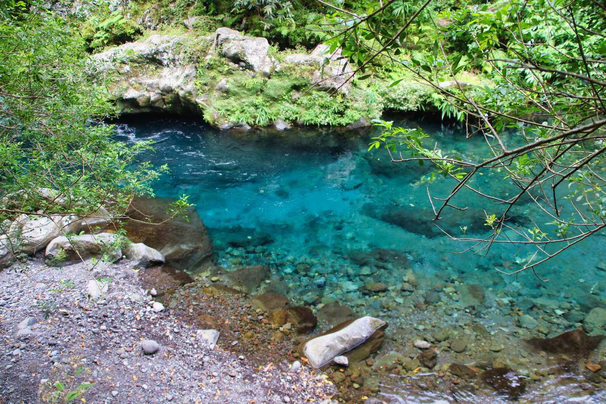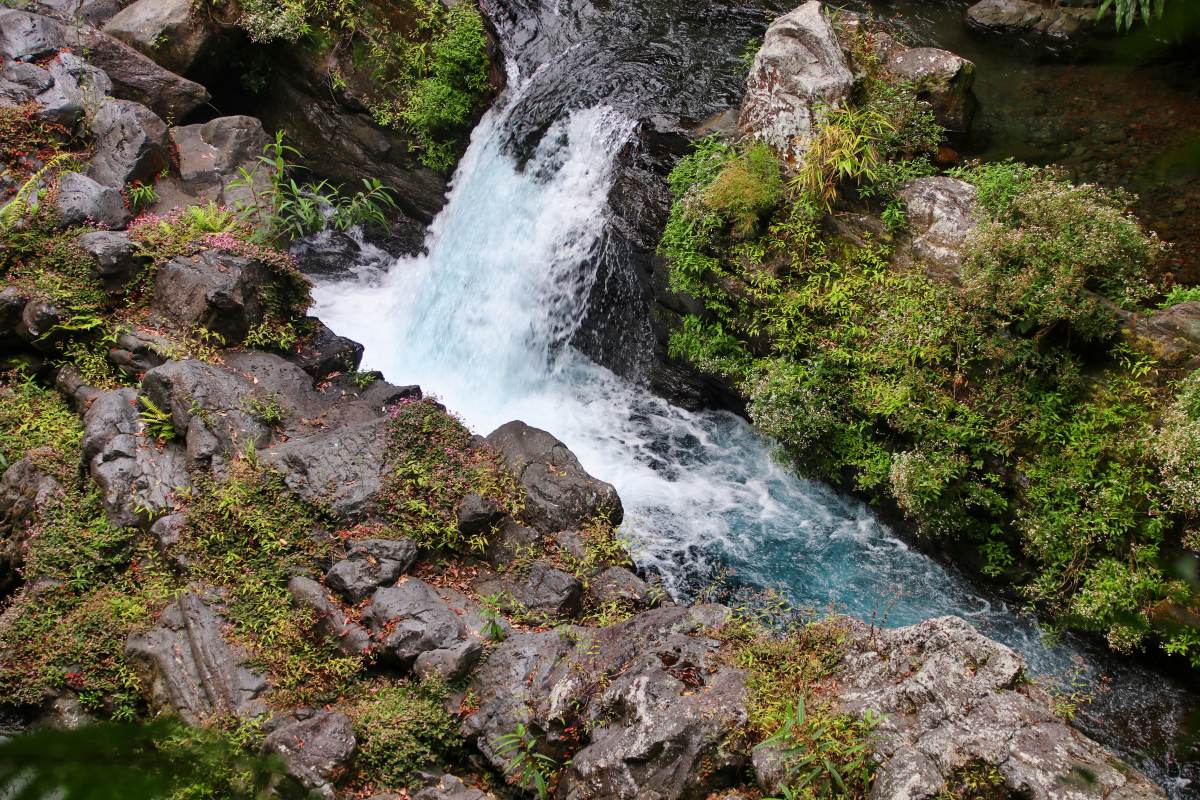 Ein weiteres Becken mit Wasserfällen erreichen wir über einen schmalen Pfad. Hier ist deutlich weniger los. Auch wir starten zunächst auf der falschen Seite des Flusses und müssen noch einmal über die Brücke zurück.