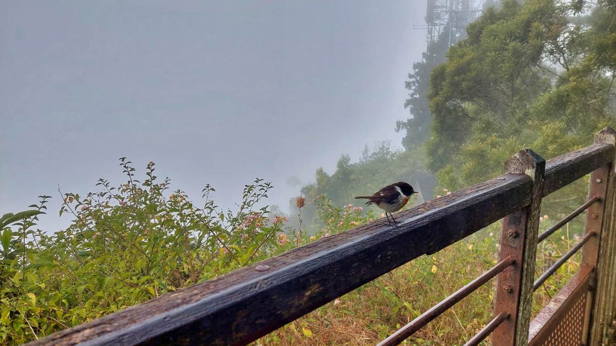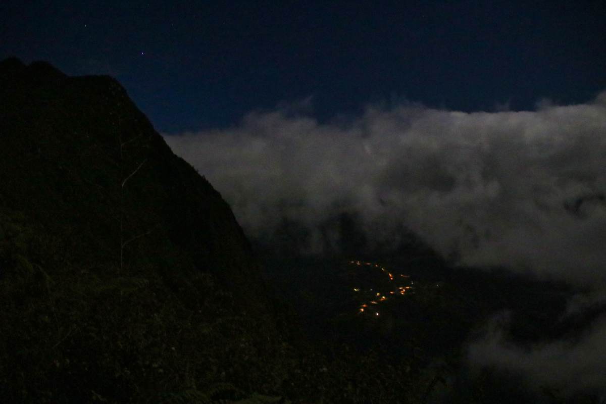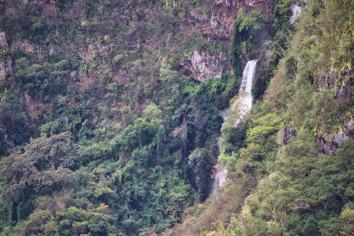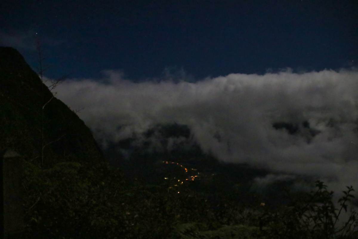 Am Abend fahren wir noch einmal zum Aussichtspunkt. Die Wolken hängen hier immer noch, aber ein wenig mehr können wir diesmal sehen.