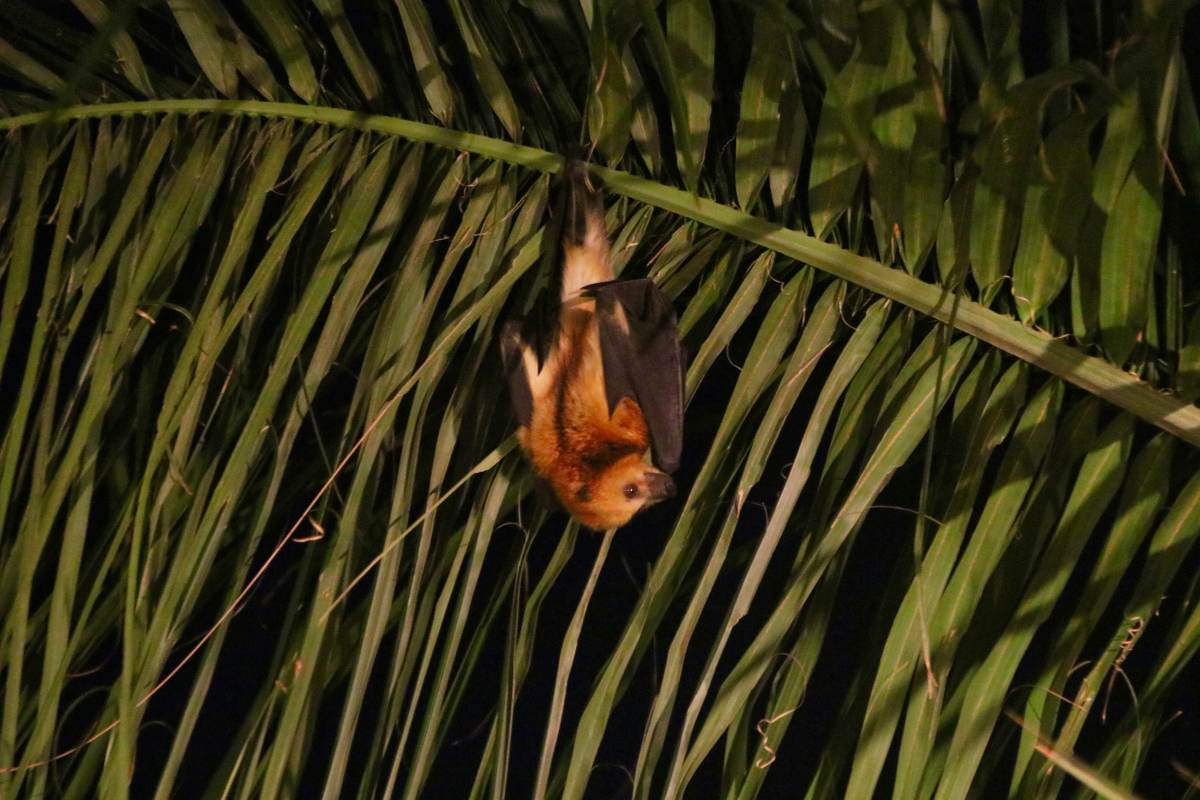Am ersten Abend essen wir auf unserem Balkon etwas schnelles – unter den wachsamen Blicken der Flughunde in den Bäumen.