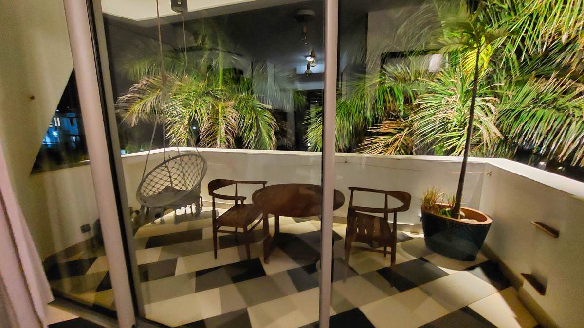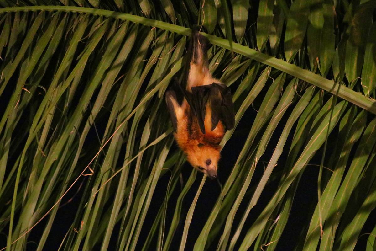 Am ersten Abend essen wir auf unserem Balkon etwas schnelles – unter den wachsamen Blicken der Flughunde in den Bäumen.