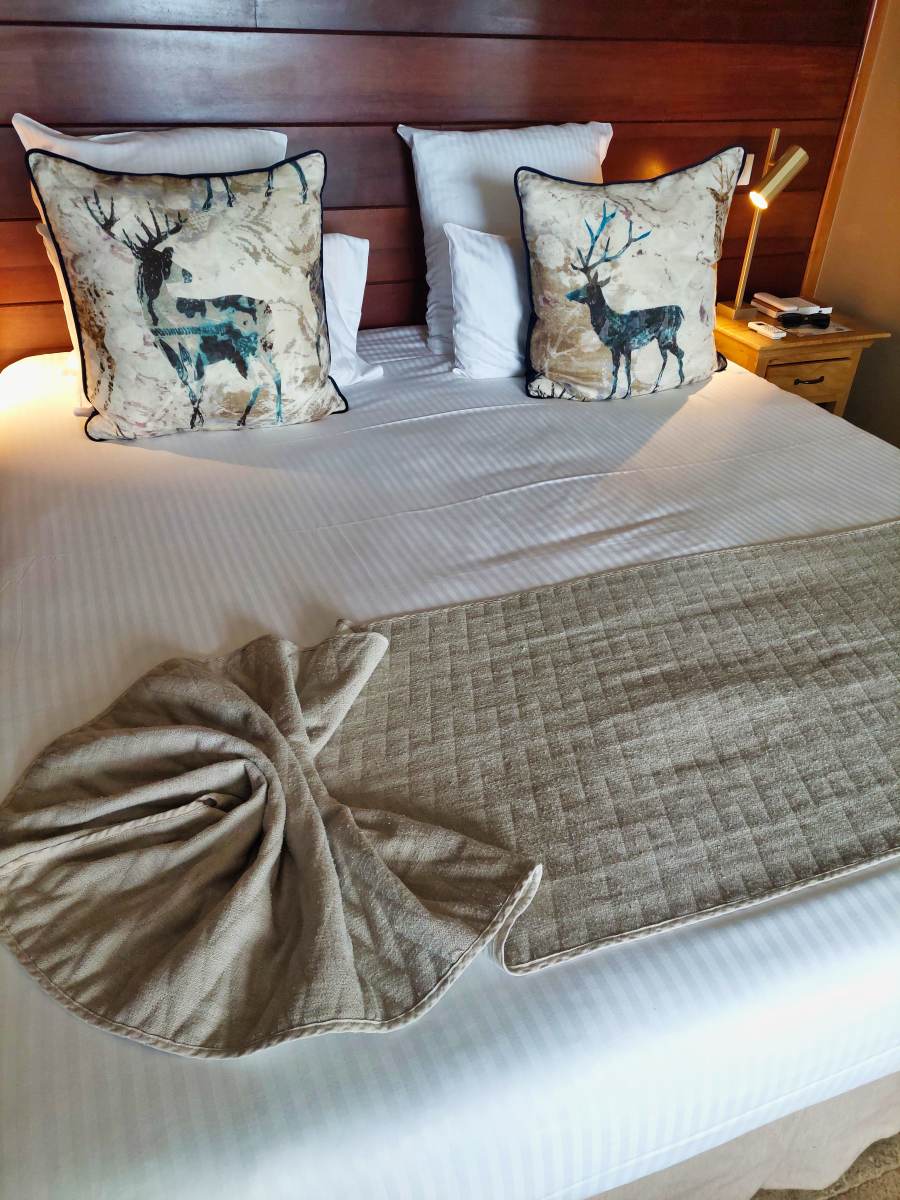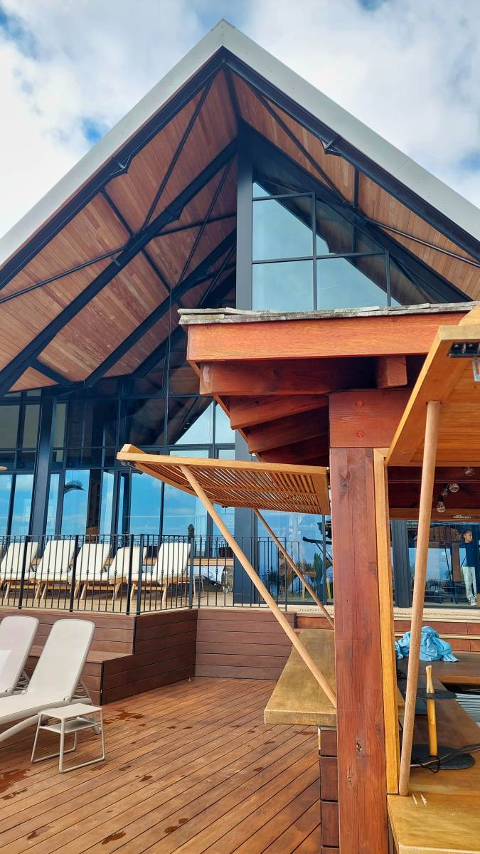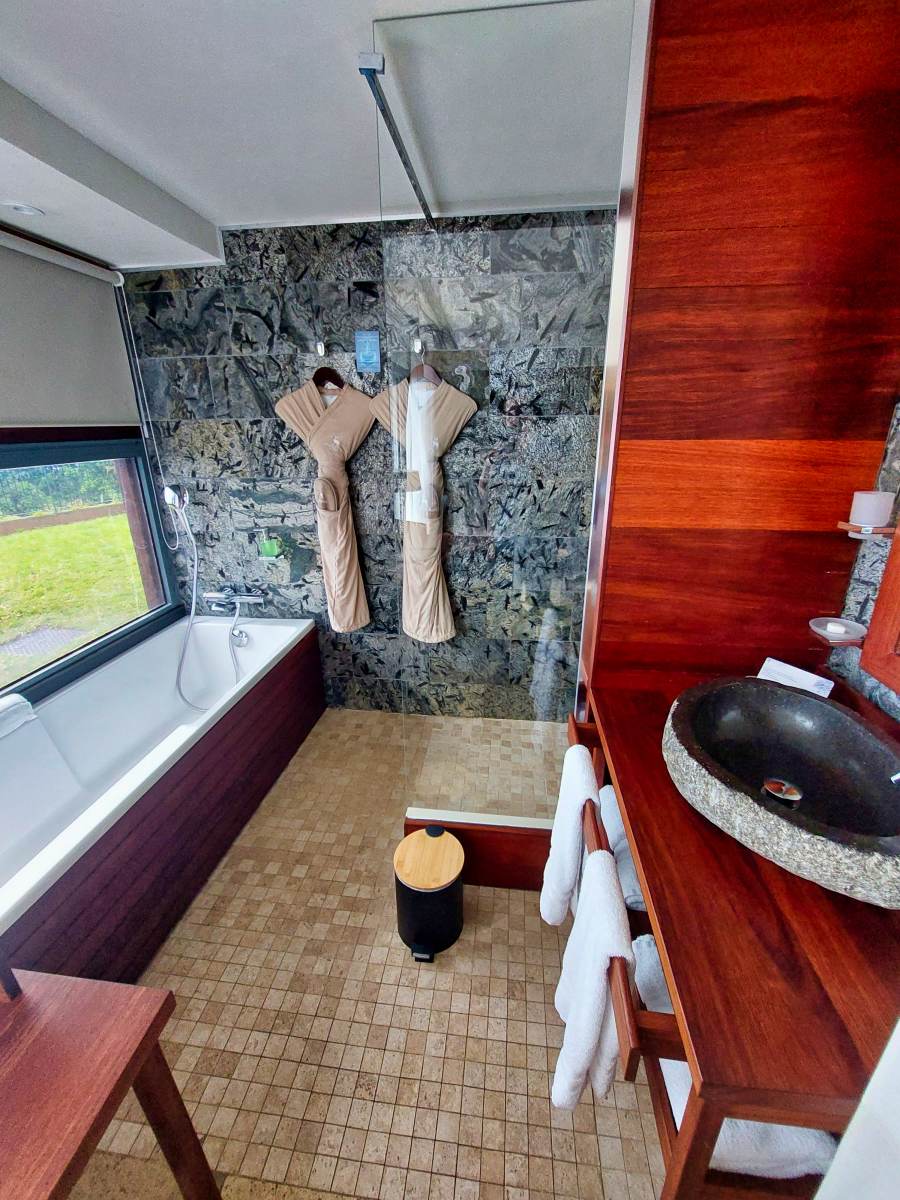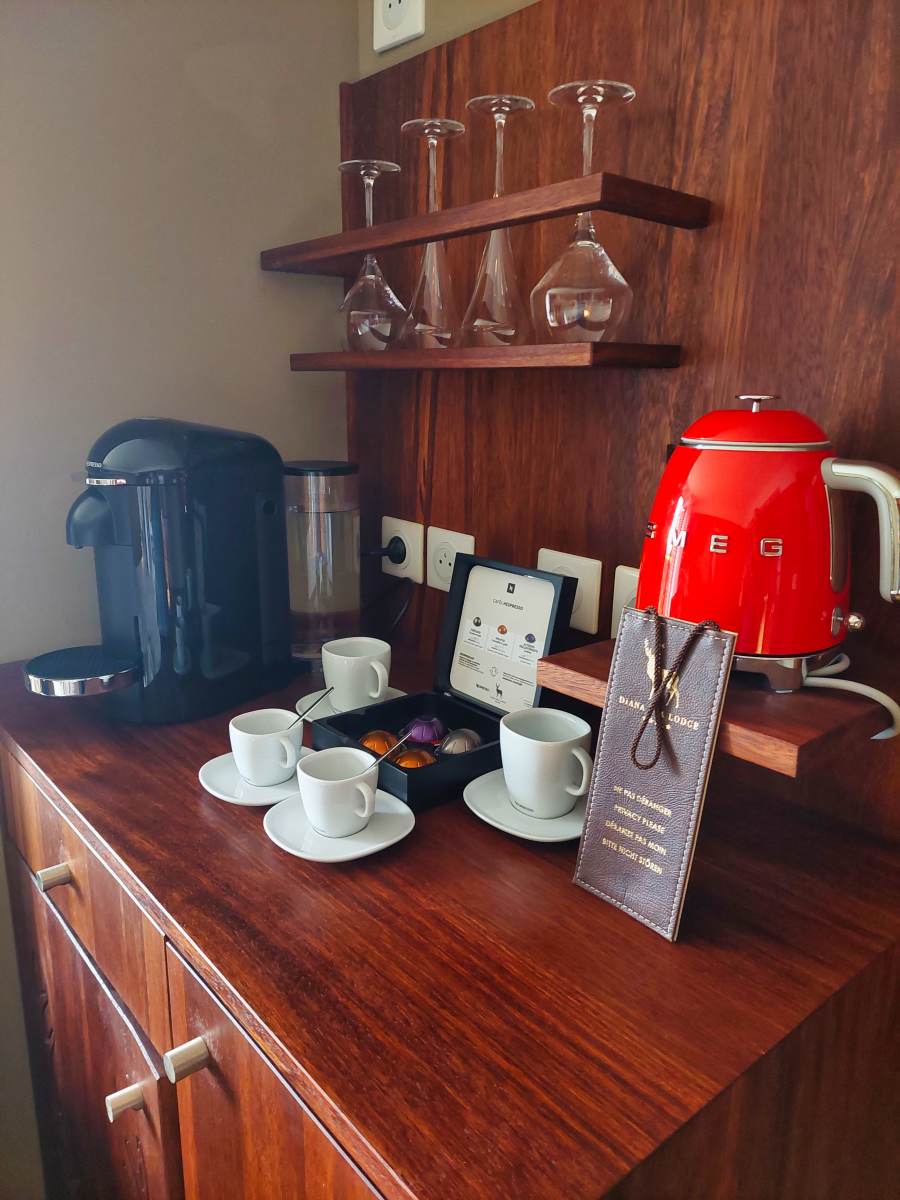 Über eine schmale Straße geht es den Berg hinauf zur Lodge. Die Anlage ist sehr schön, besonders das aufwendig gestaltete Hauptgebäude. Fünf Sterne – das ist erst mal etwas, an das man sich gewöhnen muss.