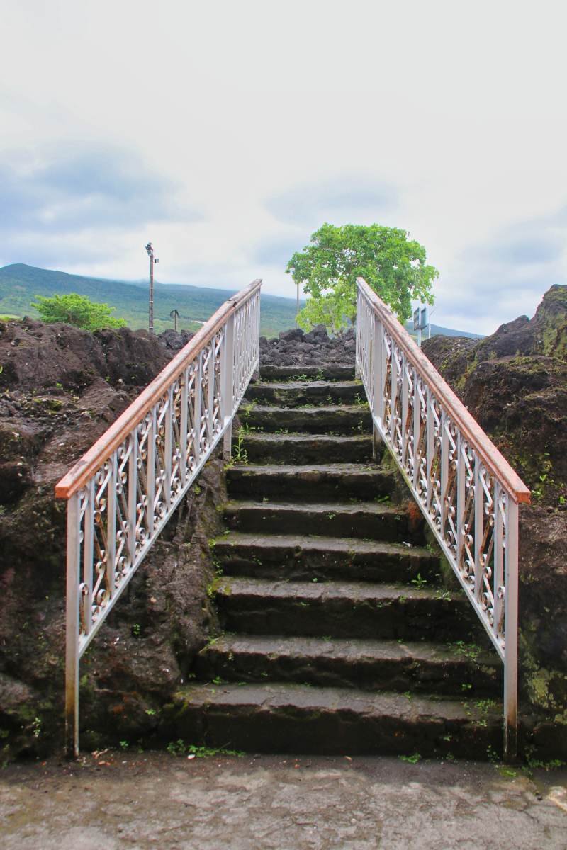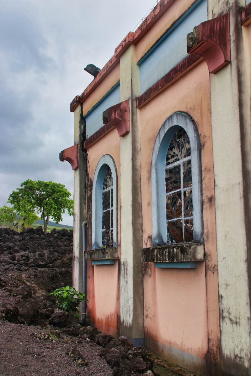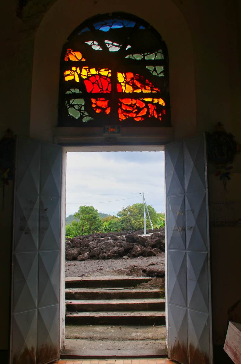 Ein paar Kilometer weiter steht diese kleine Kirche. Bei einem Vulkanausbruch stoppte die fließende Lava genau in der Mitte des Gebäudes, sodass die Kirche erhalten werden konnte.