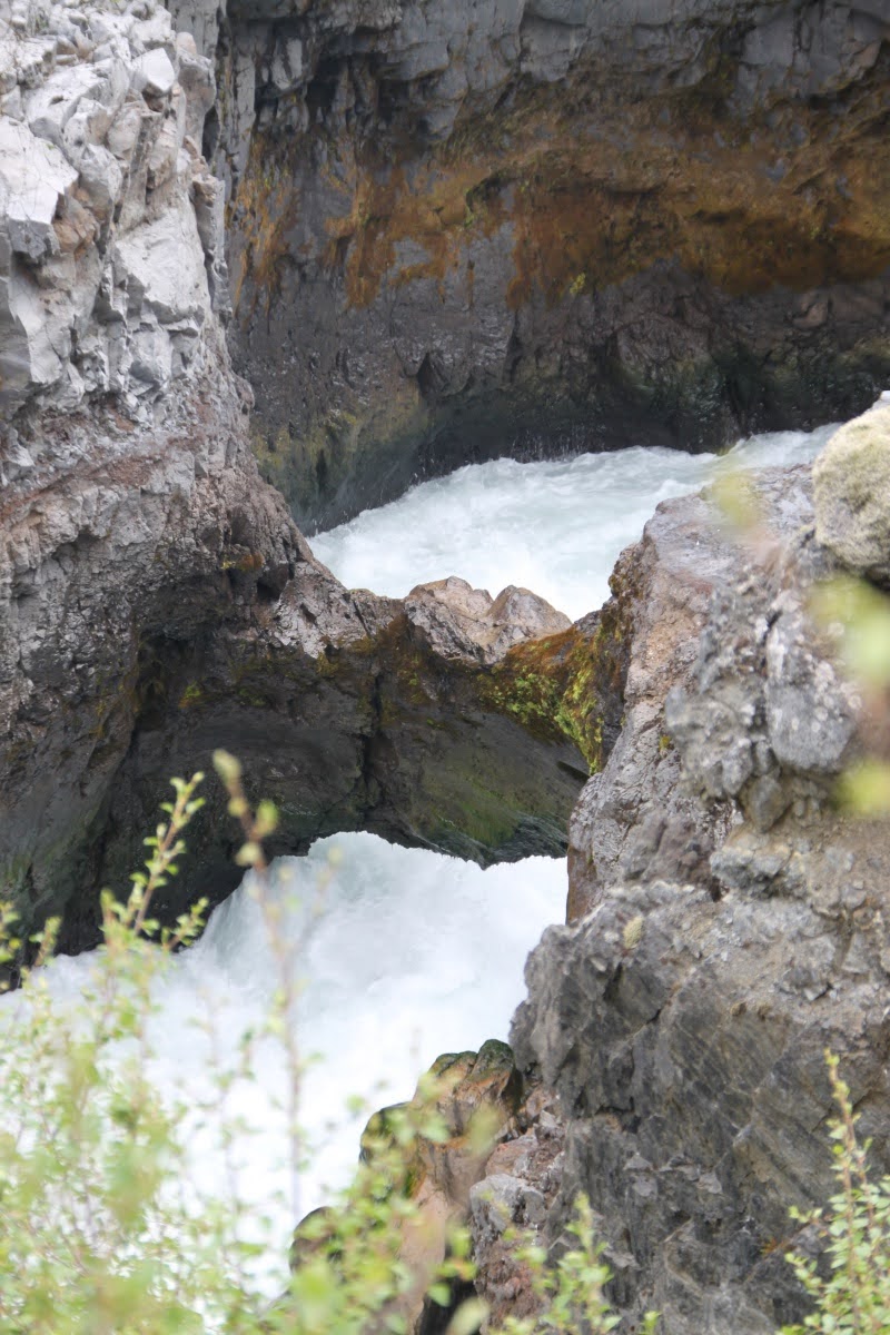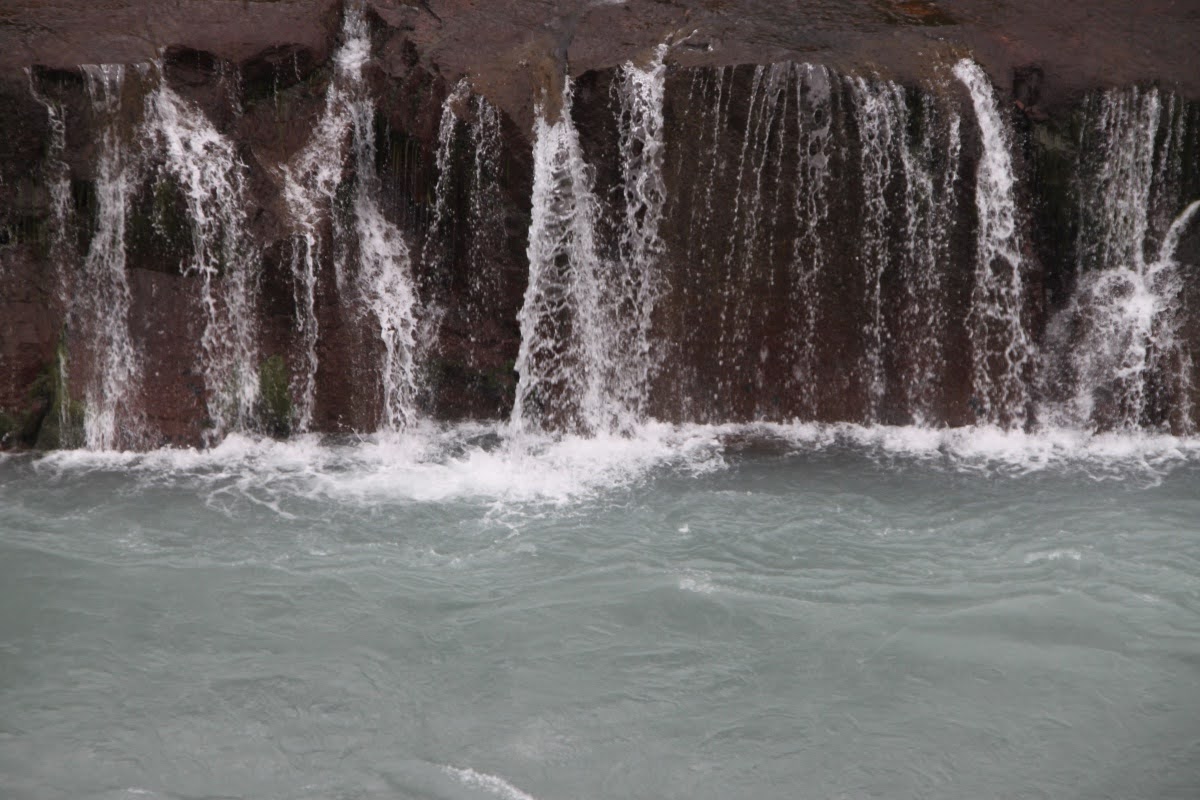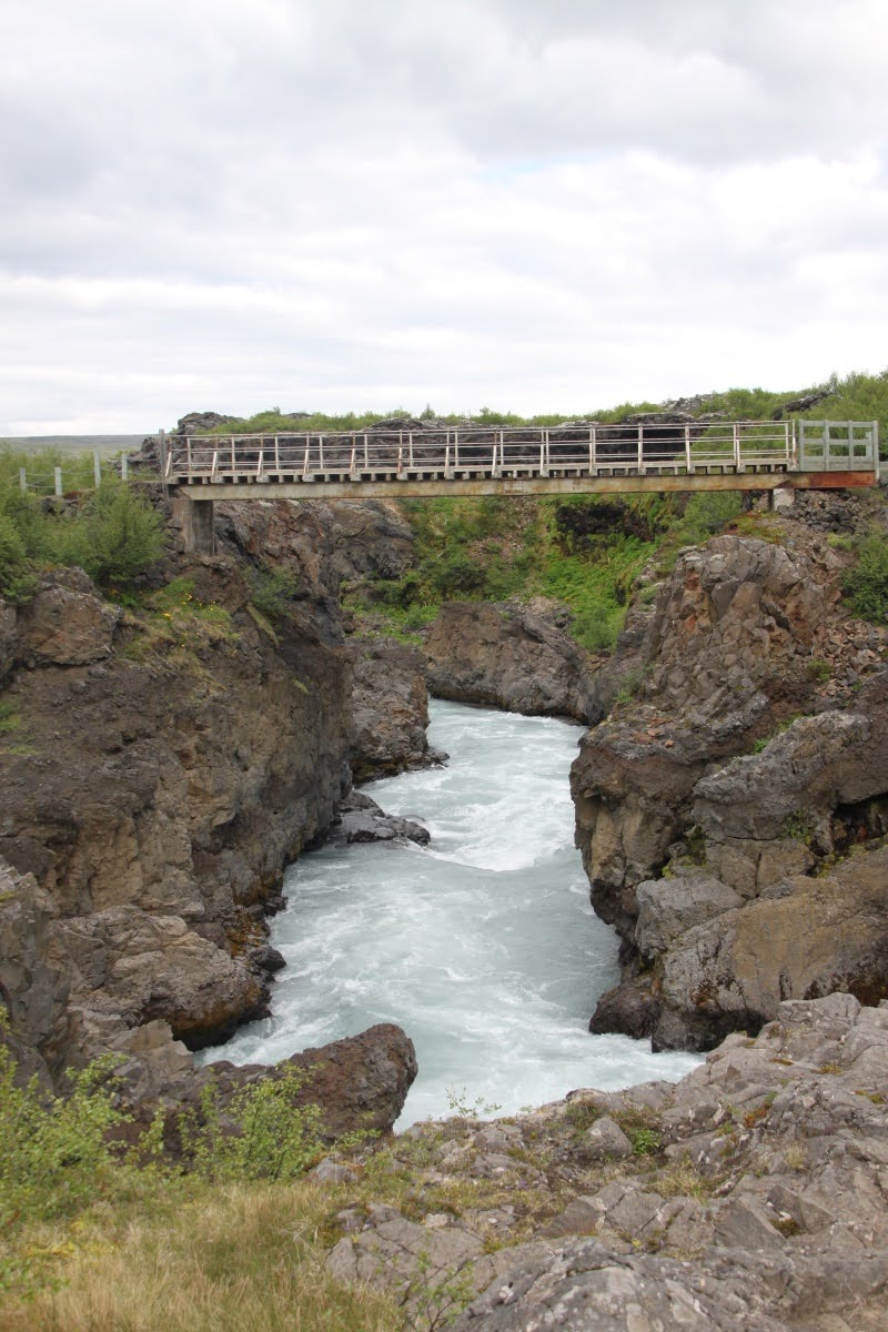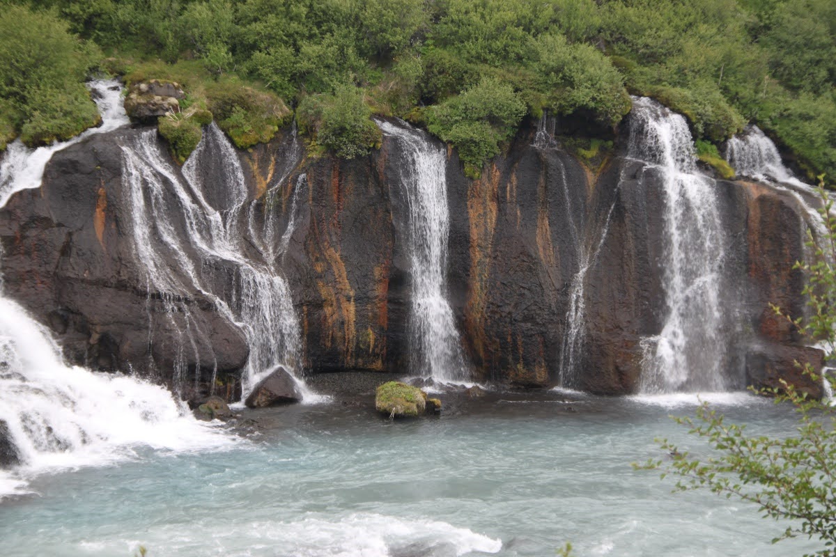 Die Wasserfälle des Flusses Hvítá scheinen direkt aus der Lava zu entspringen. Daher haben sie auch ihren Namen Hraunfossar. Sie erstrecken sich über die Länge von einem Kilometer. Direkt daneben liegt der Wasserfall Barnafoss, der nach einer Sage benannt ist.