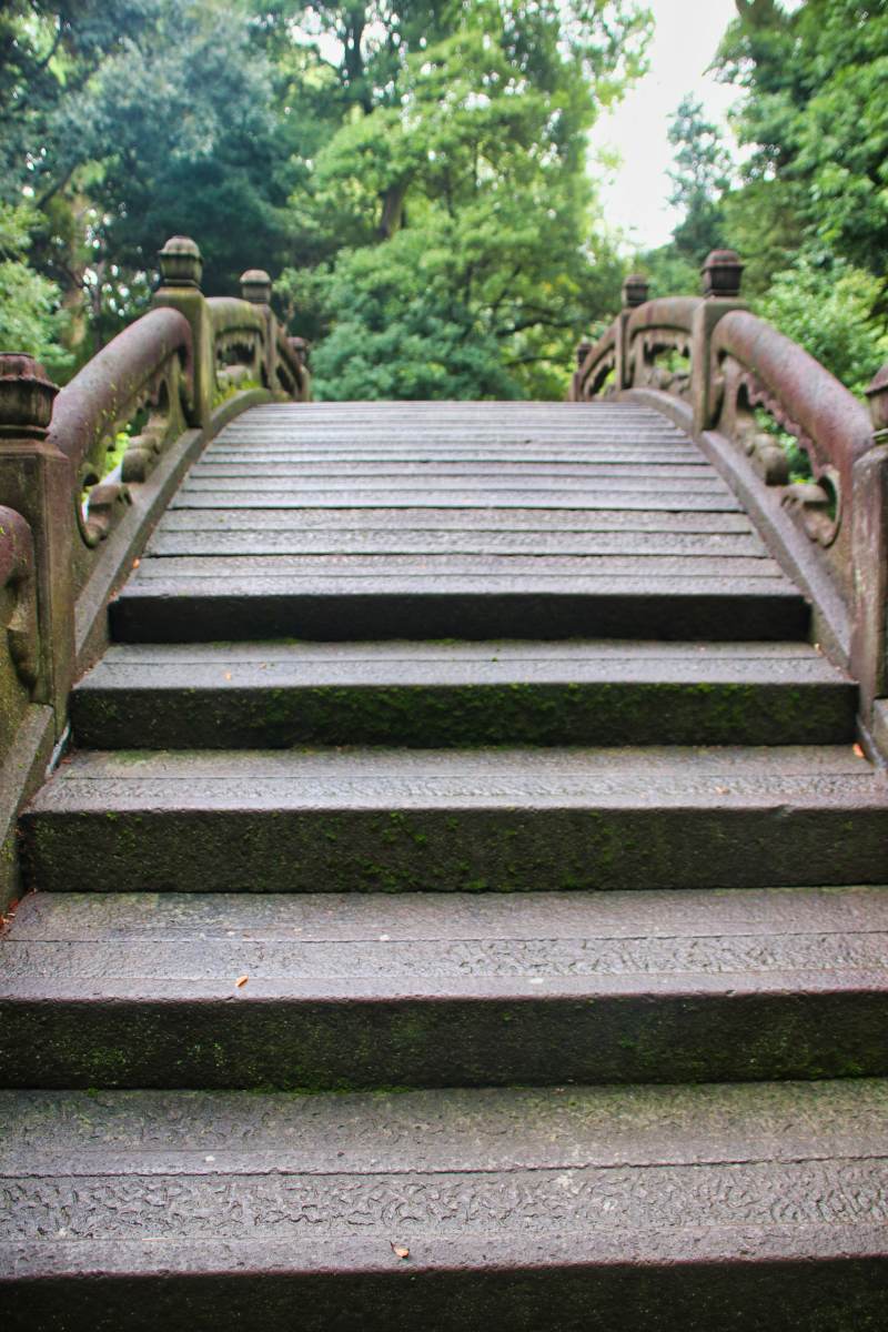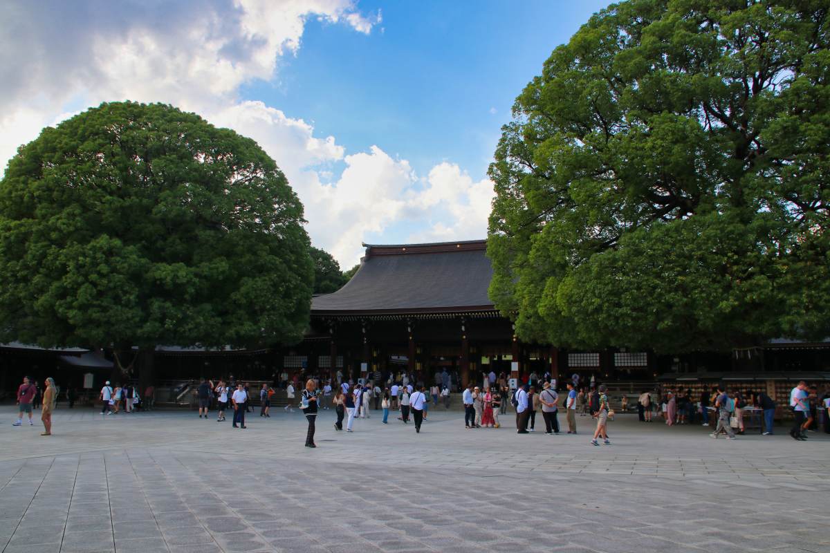 In der Nähe der Kreuzung befindet sich der Meiji-Schrein. Im Park rundherum entgeht man ganz plötzlich dem Lärm der Stadt.