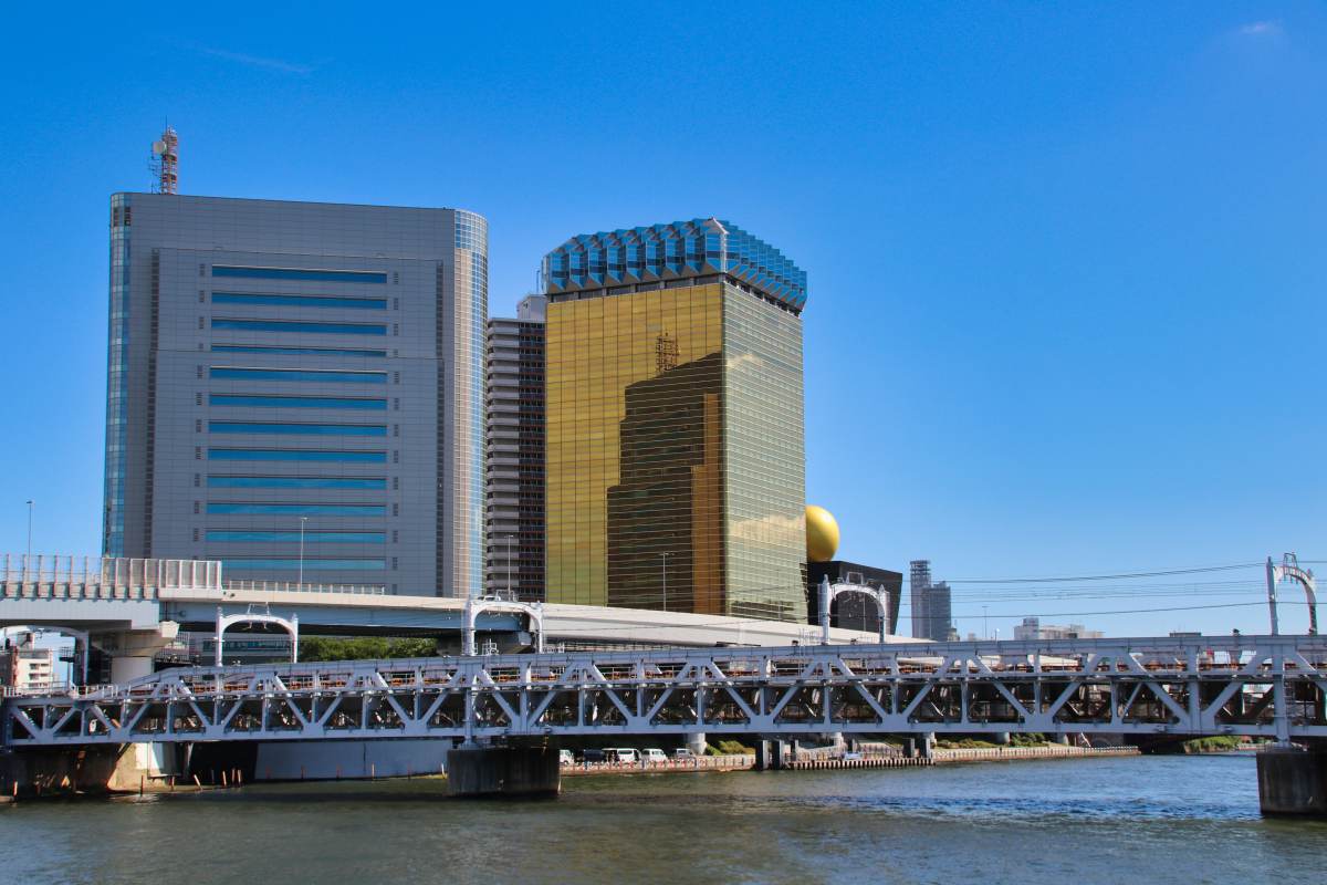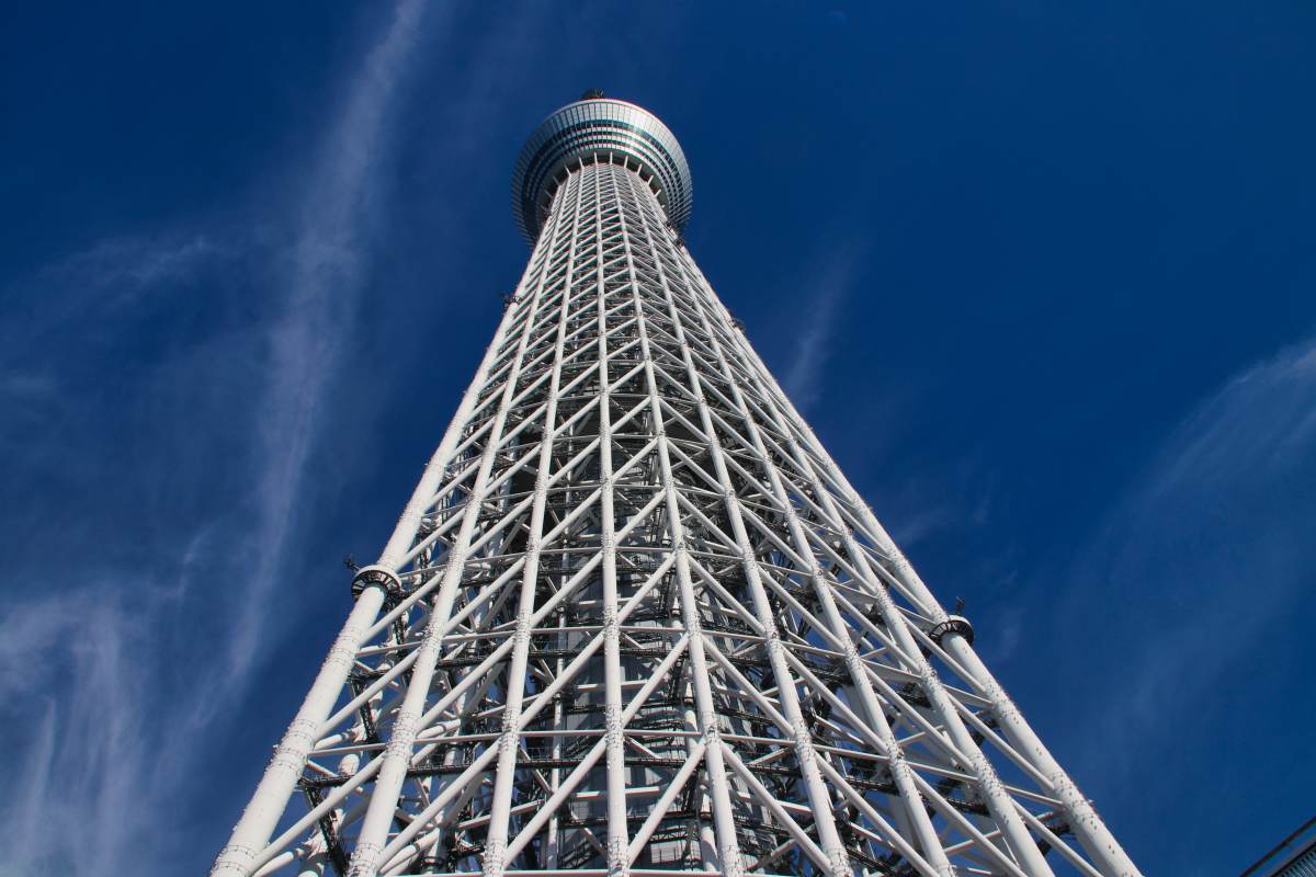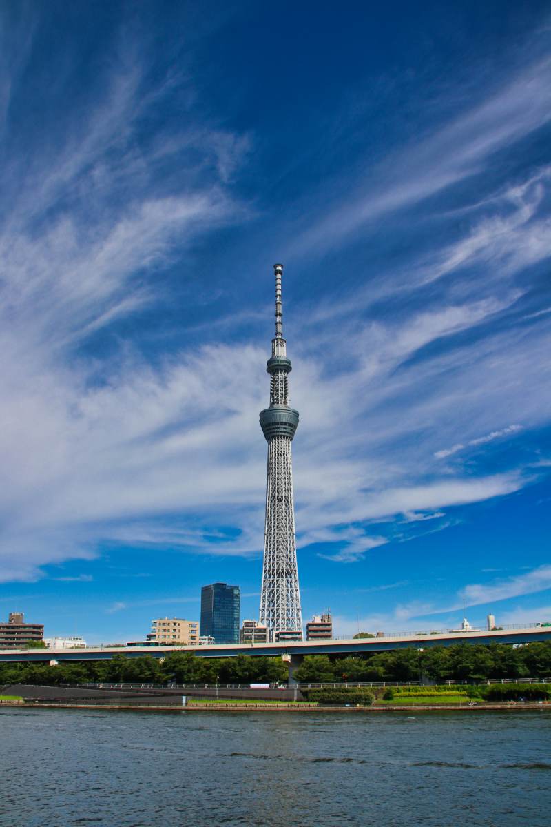 Der Fernsehturm ist das dritthöchste Bauwerk der Erde. Einen guten Blick aus der Entfernung hat man vom Sumida River Walk.