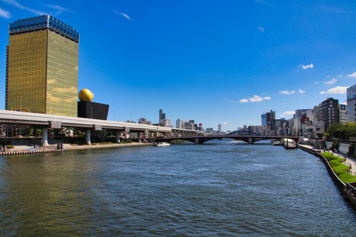 Der Fluss fließt durch Tokio bis zur Tokyo Bay. Zur Kirschblütenzeit sieht er wahrscheinlich deutlich beeindruckender aus als im Sommer.