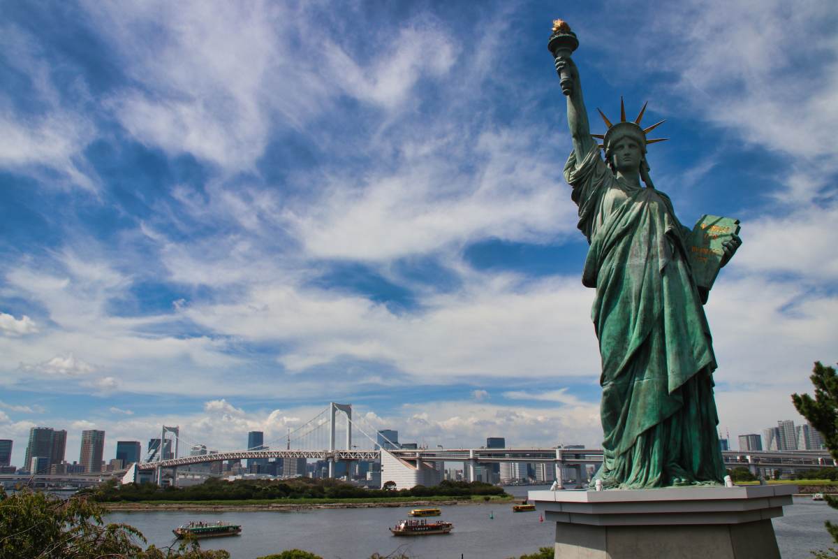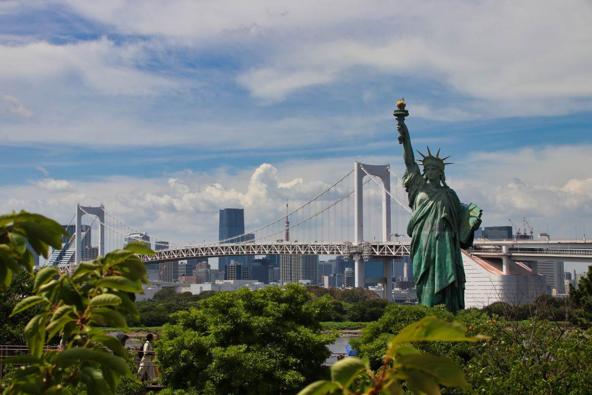 In Odaiba steht eine Nachbildung der Freiheitsstatue von New York. Sie ist allerdings deutlich kleiner als das Original.